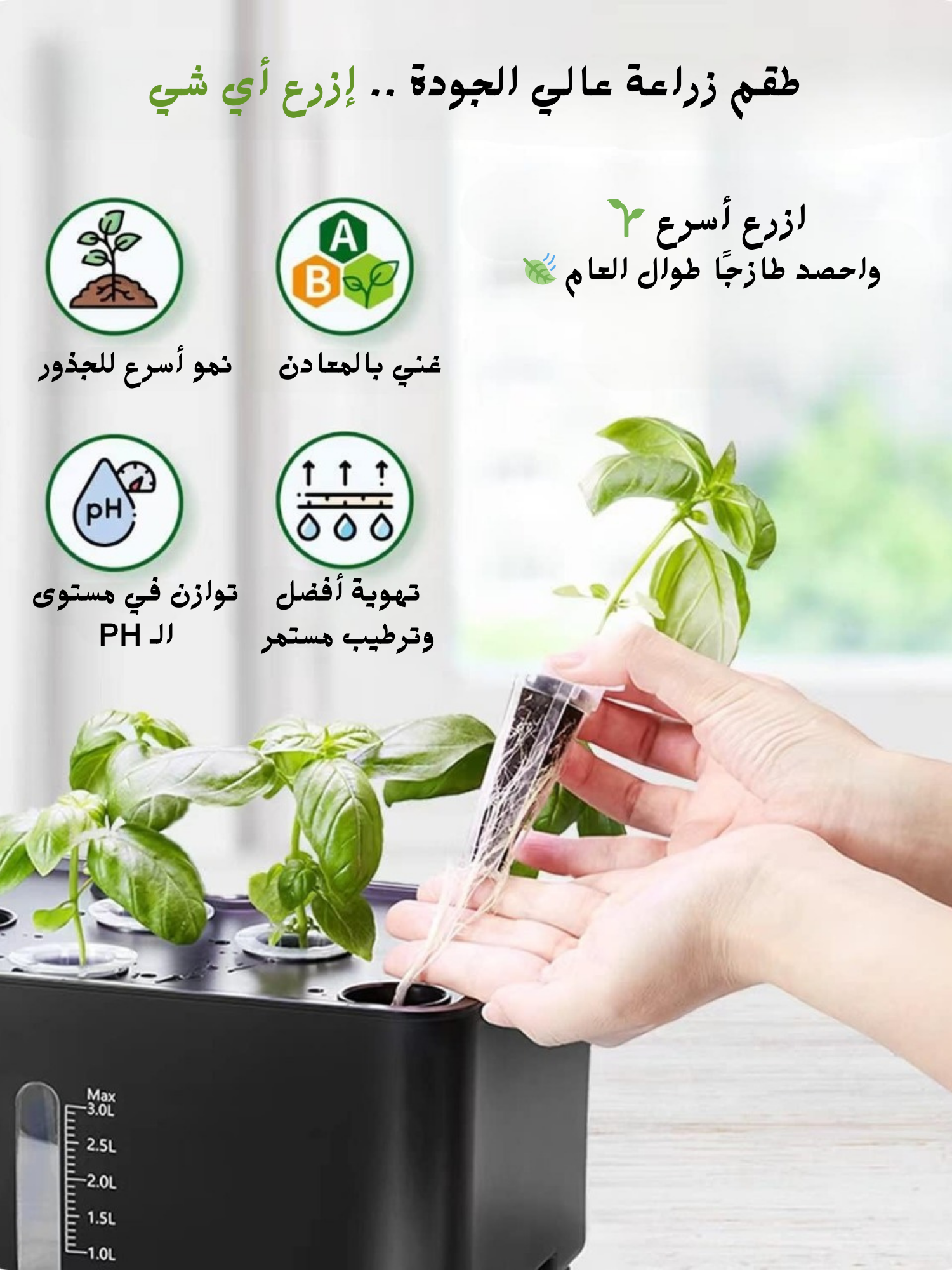 مثالي لزراعة الخضروات، الأعشاب، الفواكه، والزهور. مناسب لمحبي الزراعة المائية أو الزراعة في البيوت المحمية. هدية ممتعة ومفيدة للرجال والنساء والأطفال والنباتيين.