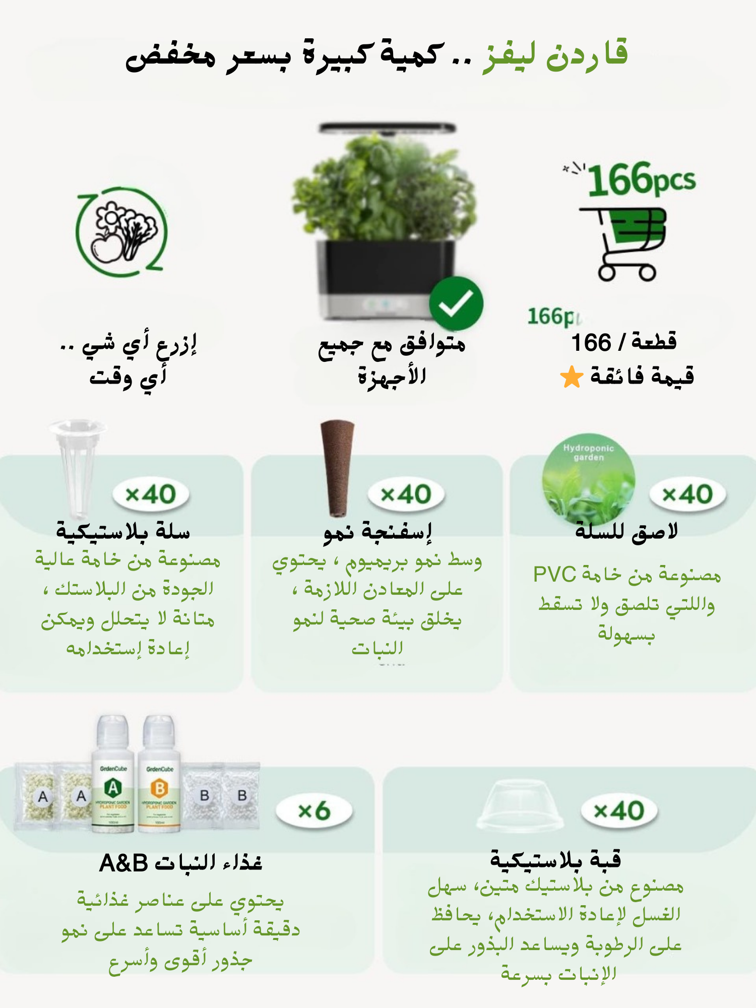 ✅ طقم زراعة مائية متكامل – 166 قطعة: