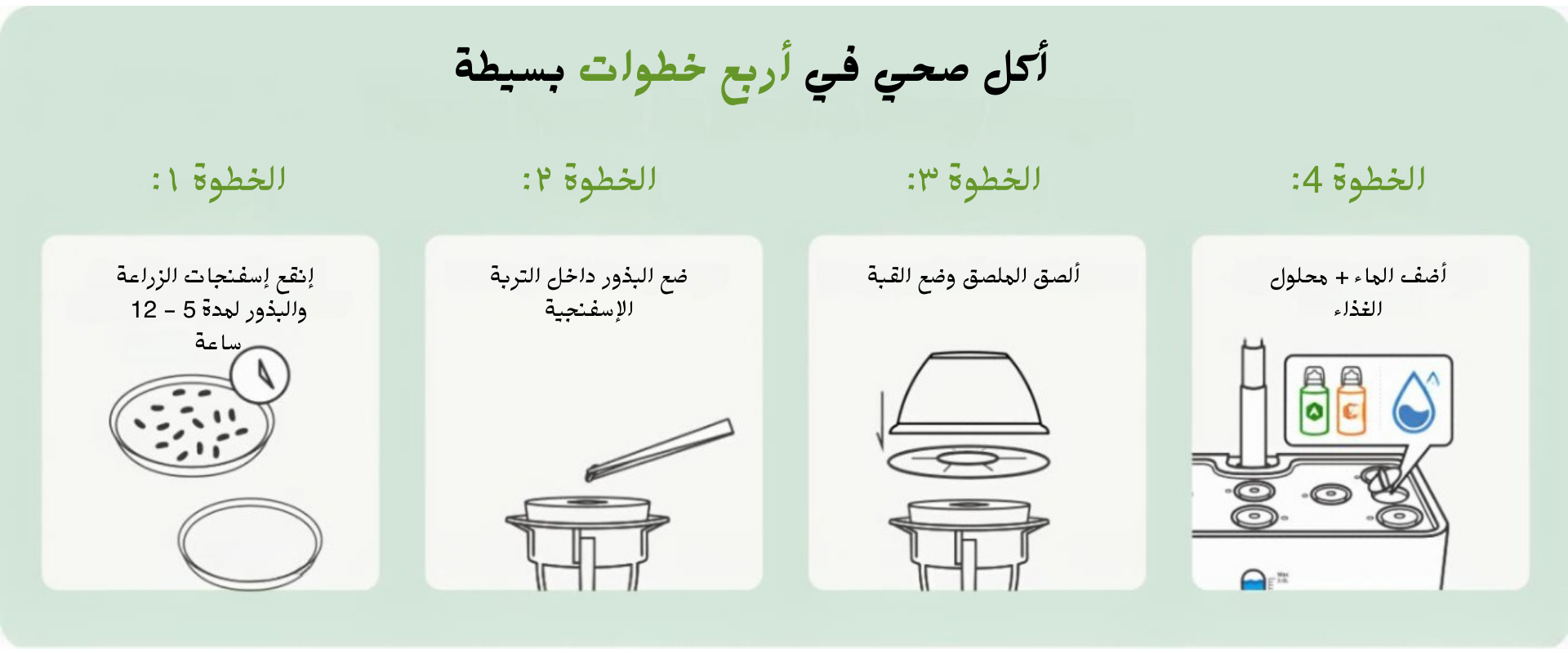أضف الماء والبذور وشغل الجهاز